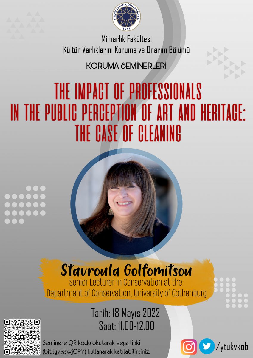 14- Stavroula Golfomitsou, The Impact of Professionals in the Public Perception of Art and Heritage: The Case of Cleaning, 18 Mayıs 2022, Çevrimiçi