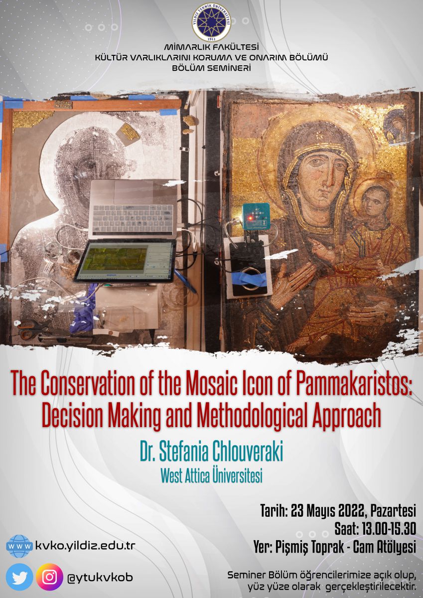 3- Stefania Chlouveraki, The Conservation of the Mosaic Icon of Pammakaristos: Decision Making and Methodological Approach, 23 Mayıs 2022, YTÜ KVKO Bölümü A Blok Atölyesi