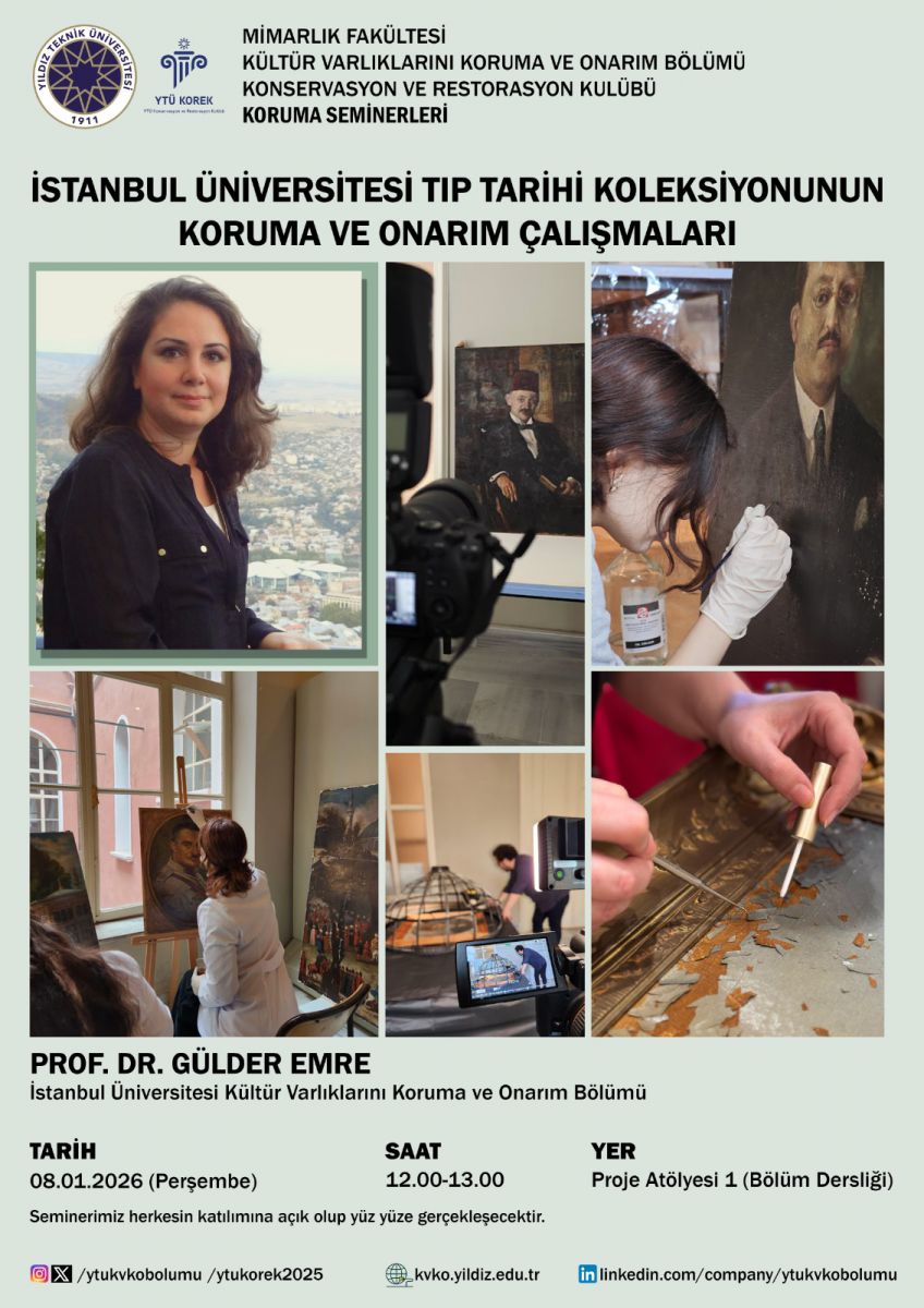 22- Gülder Emre, İstanbul Üniversitesi Tıp Tarihi Koleksiyonunun Koruma ve Onarım Çalışmaları, 8 Ocak 2026, YTÜ KVKO Bölümü Proje Atölyesi 1