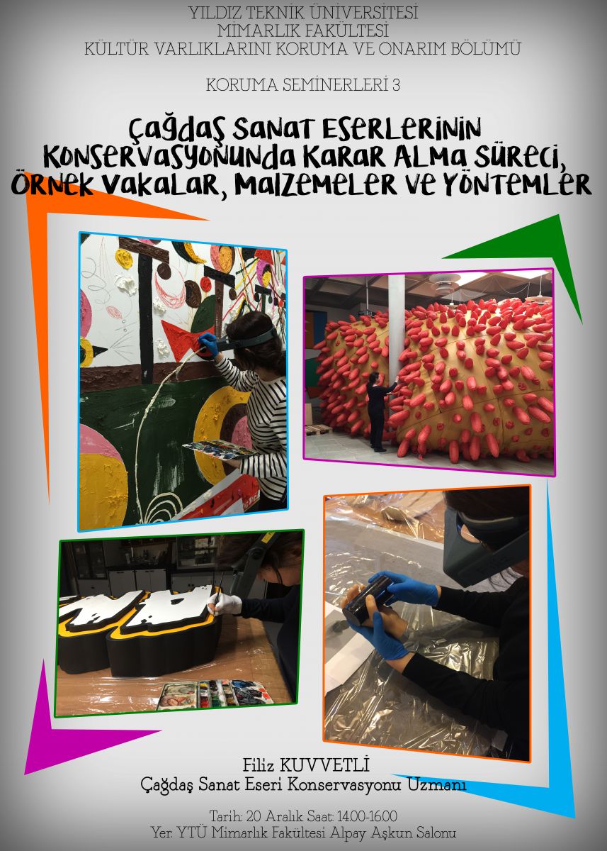 3- Filiz Kuvvetli, Çağdaş Sanat Eserlerinin KonservasyonundaKarar Alma Süreci, Örnek Vakalar, Malzemeler ve Yöntemler, 20 Aralık 2018, YTÜ Mimarlık Fakültesi Alpay Aşkun Toplantı Salonu